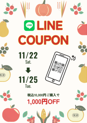 ▶11/22(土)~25(火)お友だち限定🤝LINEクーポン🎁✨️