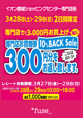 専門店お買物券 10%BACK🔙
